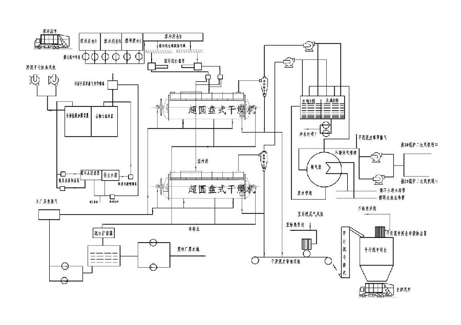 一期工程選用天通吉成機器技術有限公司制造的SDK-370D圓盤式污泥干燥機2臺,建設兩條污泥干化生產線,單臺干化機日處理能力100噸,并預留有同等處理能力的兩條污泥干化線位置。