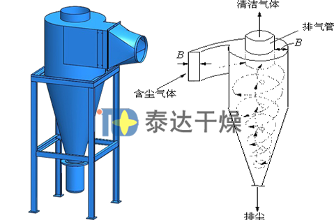 旋風除塵器是由進氣管、排氣管、圓筒體、圓錐體和灰斗組成。旋風除塵器結構簡單,易于制造、安裝和維護管理,設備投資和操作費用都較低,已廣泛用來從氣流中分離固體和液體粒子,或從液體中分離固體粒子。高效旋風除塵器主要適用于含有干燥的、非纖維性物料粉塵的氣體的凈化,以及對有價值的粉塵進行回收。