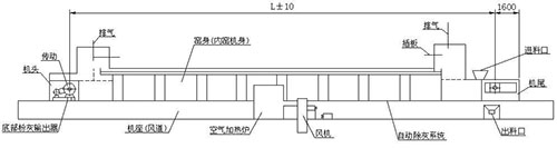 在輸送帶通過時,紅外輻射從上往下加熱輸送帶上的物料,使物料受熱水分蒸發;空氣循環系統使得熱風從物料間穿流而過,帶走物料排出的水分。傳輸帶運行速度可根據物料溫度自由調節,干燥后的成品連續落入收料器中。干燥機長度由標準加熱單元組合而成,為了節約場地,可將烘干機制成多層式,常見的有二室三層、二室五層、長度6-40m,有效寬度0.6-2.0m。。